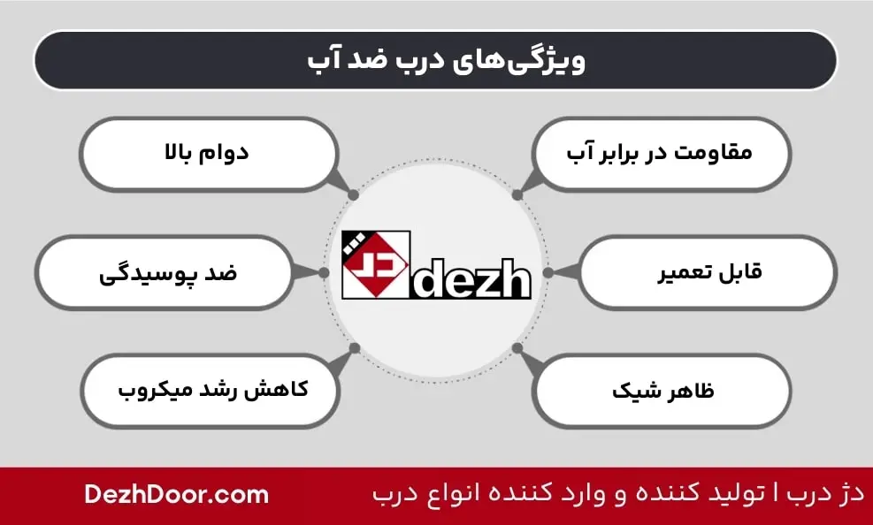 این محصول از نفوذ آب و رطوبت و انتشار بوی نامطبوع به سایر قسمتهای منزل جلوگیری میکند. شما هنگام خرید درب ضد آب حمام، متوجه میشوید که قیمت آن مقرون به صرفه است. شما با خرید درب ضد آب حمام از دژ، از مزایای بینظیری مانند مشاوره رایگان با کارشناسان فروش این مجموعه، سفارشسازی درب متناسب با ابعاد محل نصب و سلیقهتان و… بهرهمند خواهید شد.