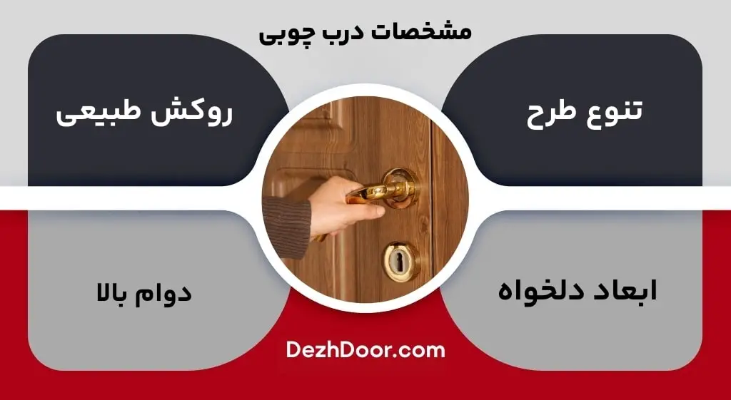 از مشخصات درب چوبی اتاقی باید به تنوع طرح و رنگ آن اشاره کرد و همین موضوع باعث میشود که کاربر بتواند با توجه به دکوراسیون داخلی منزل و سلیقه خود محصول دلخواهش را انتخاب کند. این محصولات در روکشهای طبیعی و یا مصنوعی ساخته میشوند. از دیگر ویژگیهای این محصول میتوان به قابلیت ساخت آن در ابعاد دلخواه اشاره کرد.